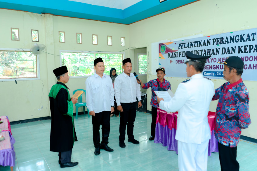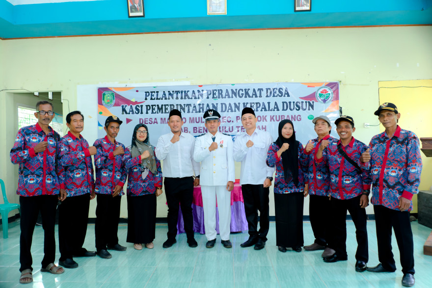 Margo Mulyo, 24 Juli 2025 — Pemerintah Desa Margo Mulyo, Kecamatan Pondok Kubang, Kabupaten Bengkulu Tengah, menggelar acara pelantikan perangkat desa untuk jabatan Kasi Pemerintahan dan Kepala Dusun, pada Kamis (24/07). Acara yang dilaksanakan di balai desa ini berlangsung dengan penuh khidmat dan dihadiri oleh berbagai elemen masyarakat serta jajaran pemerintahan kecamatan.